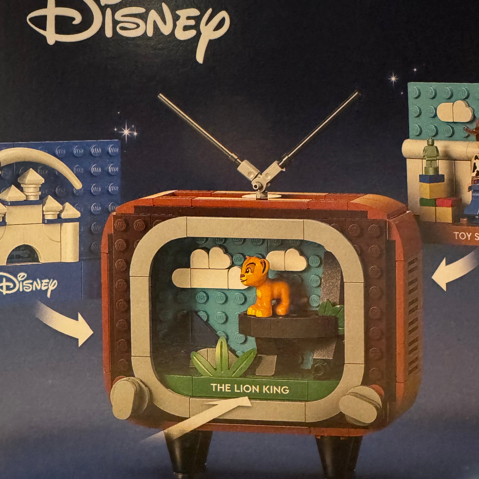 At the heart of this build is a retro-style brick-built television, designed to showcase interchangeable animated scenes. Switch between classic Disney moments and relive the magic through a creative LEGO lens.